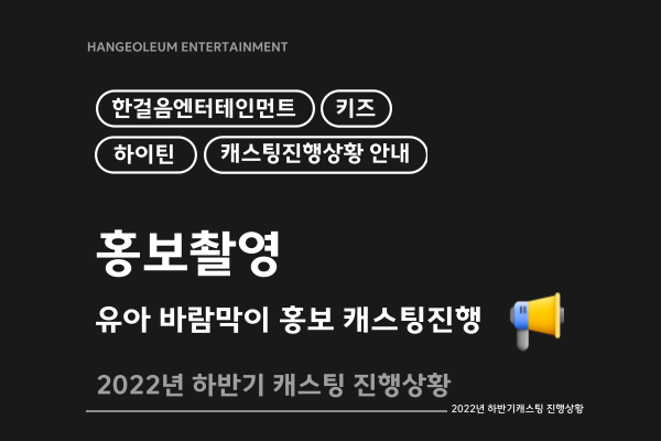 유아 바람막이 홍보촬영 캐스팅이 완료되었습니다.
