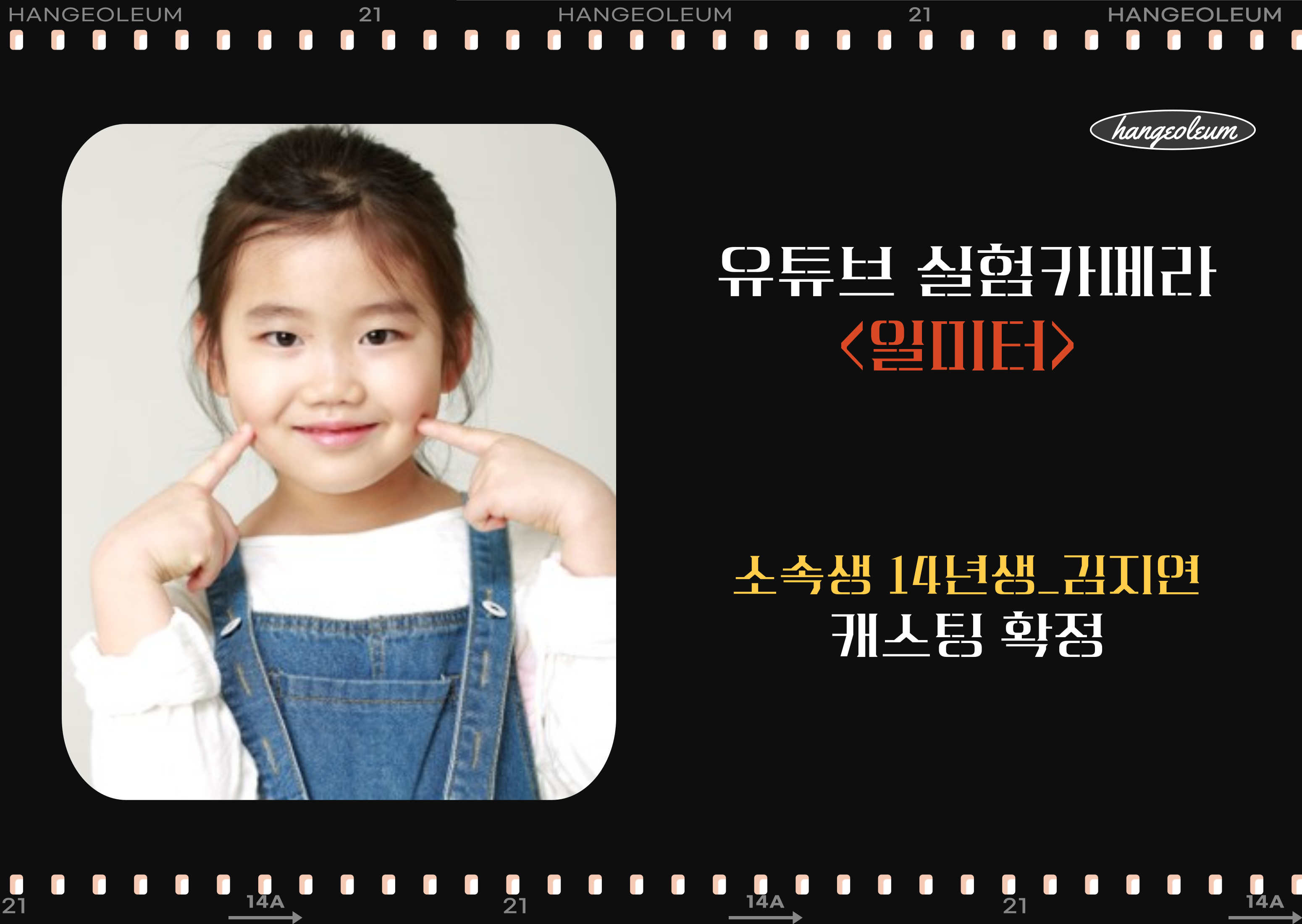 [유튜브] 유튜브 실험카메라 컨텐츠 <일미터> 한걸음 소속생 김지연 아역 캐스팅 확정안내.