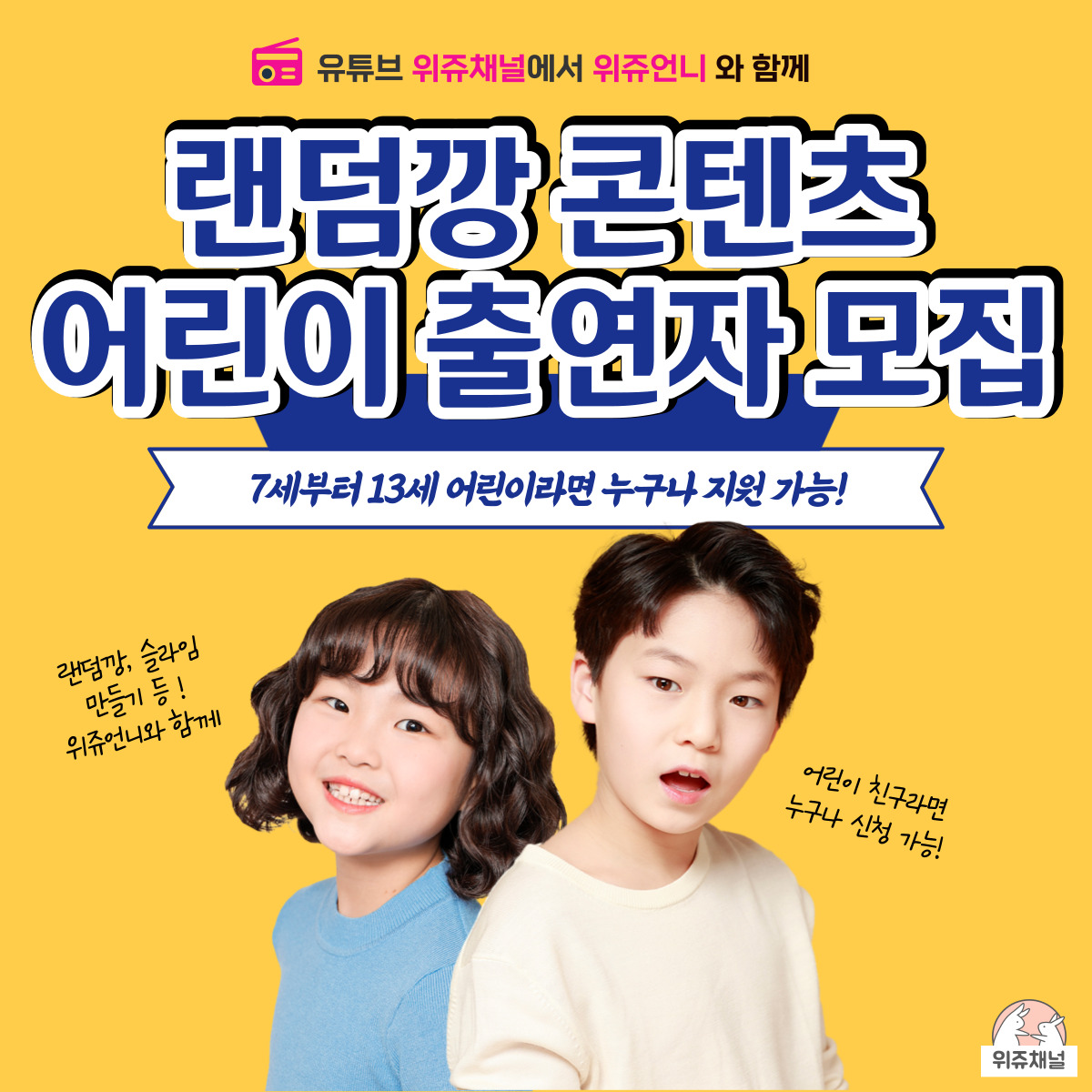 유튜브 위쥬 채널의 출연자를 모집합니다!