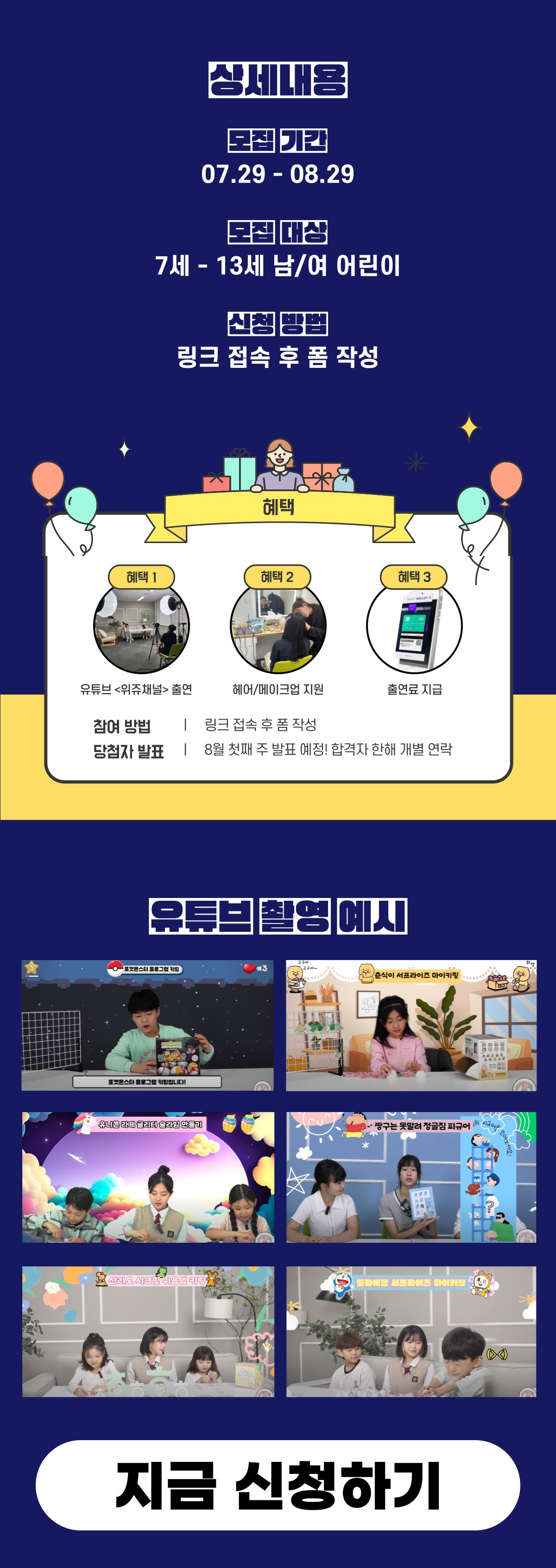 성별 상관 없이 7세 - 13세라면 누구나 신청 가능!