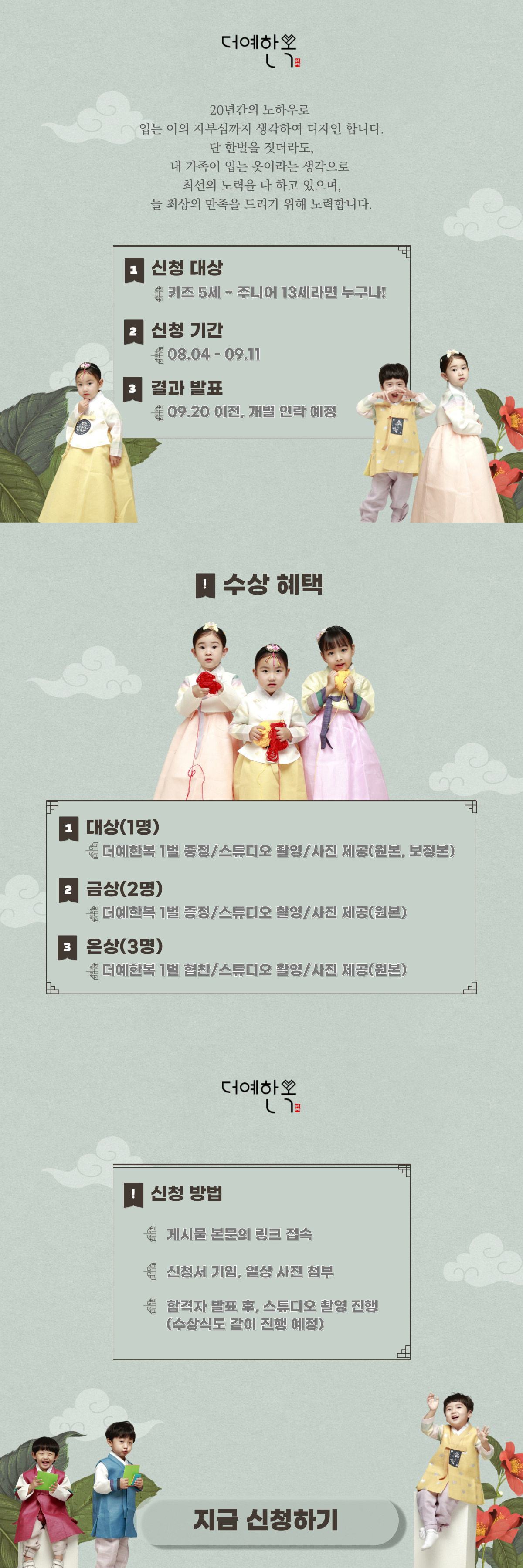 금상 2명: 더예한복 한벌 증정 + 스튜디오 피팅 촬영 + 원본 제공