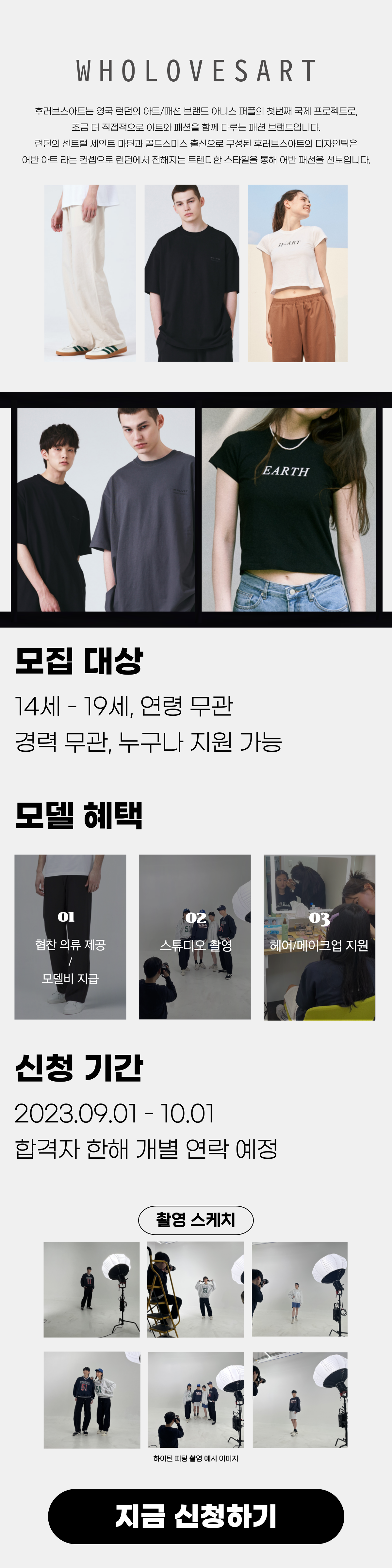 무신사 입점 의류 브랜드 '후러브스아트' 하이틴 모델을 모집합니다!
