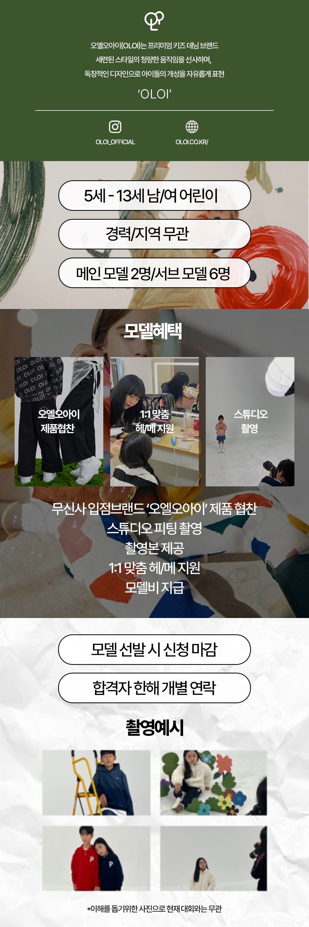 무신사 입점 의류 브랜드 '오엘오아이' 키즈 모델을 모집합니다!