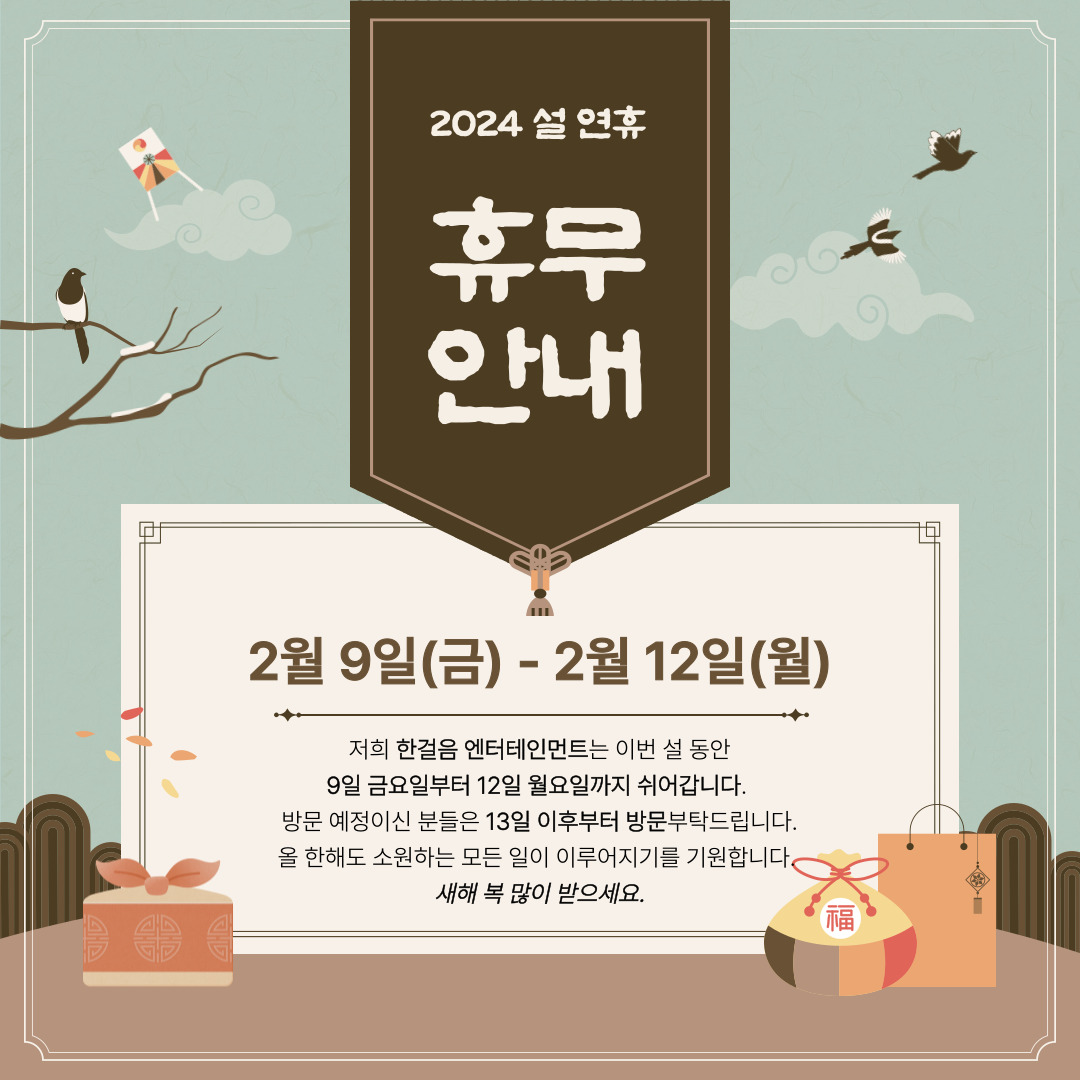 [설날휴무안내] 한걸음엔터테인먼트 설날 휴무 안내드립니다.