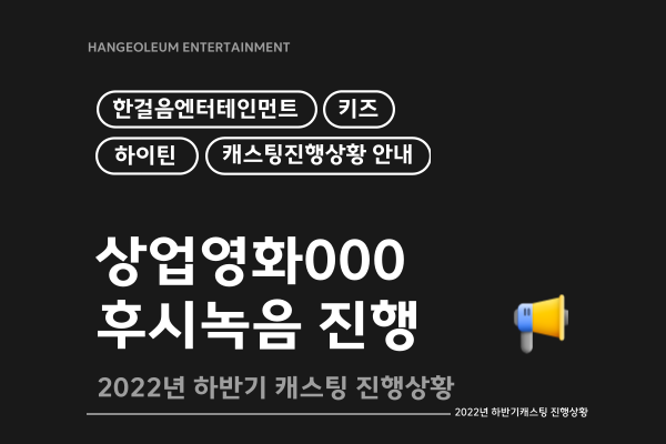 상업영화 000 후시녹음 캐스팅 진행이 완료되었습니다.