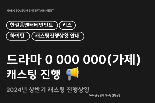 [드라마] 드라마 0 000 000(가제) 캐스팅이 진행중입니다.