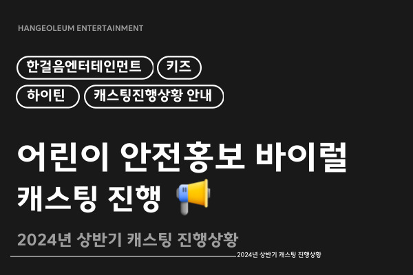 [광고/바이럴] 어린이 안전 광고 바이럴 캐스팅이 진행중입니다.