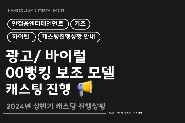 [광고/바이럴] 00뱅킹 보조모델 광고 캐스팅이 진행중입니다.