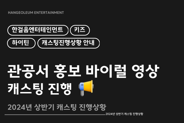 [광고/바이럴] 관공서 홍보 바이럴 영상 캐스팅이 진행중입니다.