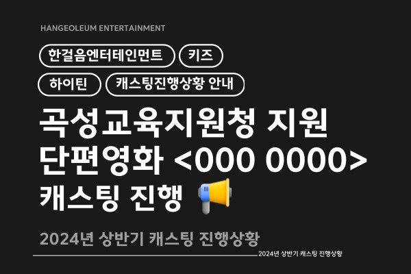 [단편영화] 곡성교육청 지원 단편영화 <000 0000> 캐스팅이 진행중입니다.