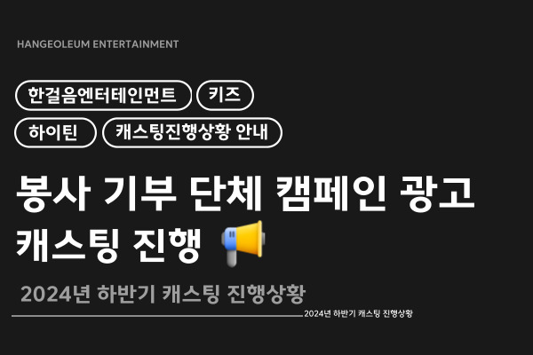 [광고/바이럴] 봉사/기부단체 캠페인 광고 캐스팅이 진행중입니다.