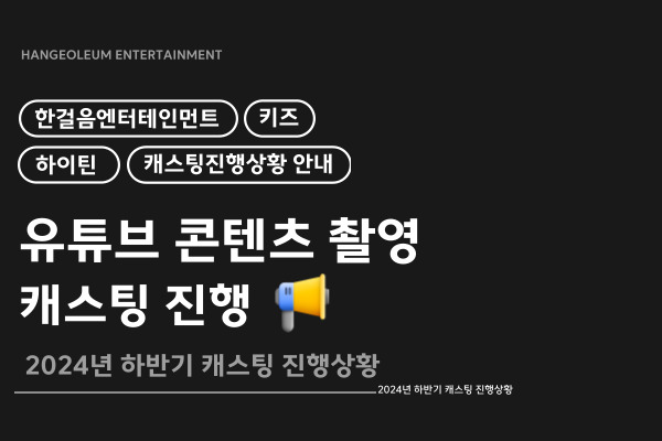 [유튜브] 유튜브 콘텐츠 촬영 캐스팅이 진행중입니다.