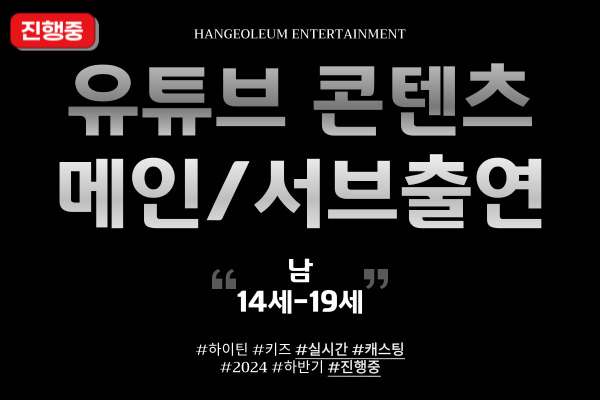 [유튜브] 유튜브 콘텐츠 서브/메인 출연 캐스팅이 진행중입니다.