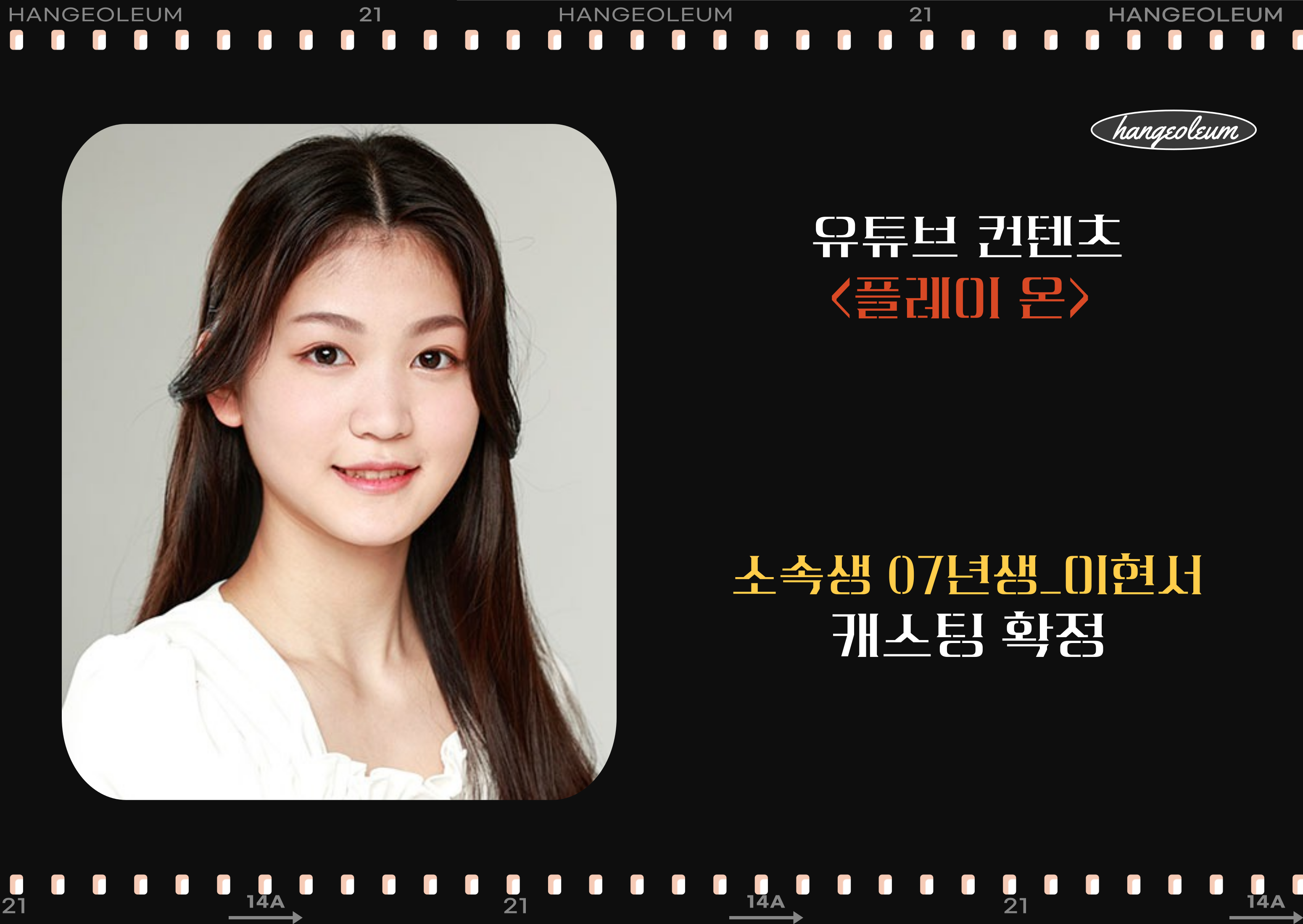 [유튜브] 유튜브 컨텐츠 < 플레이 온> 한걸음 소속생 이현서 아역 캐스팅 확정 안내.