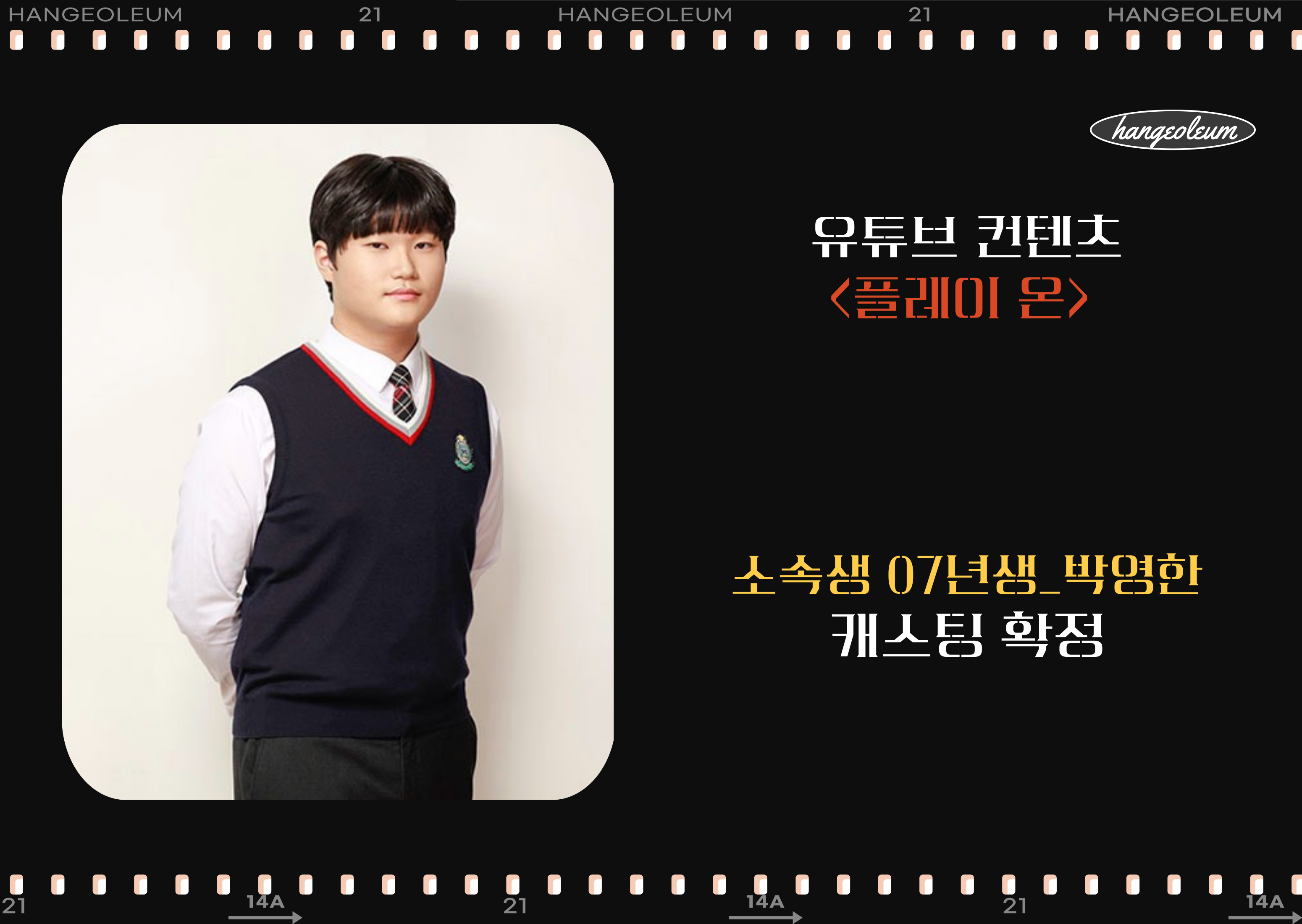 [유튜브] 유튜브 컨텐츠 < 플레이 온> 한걸음 소속생 박영한 아역 캐스팅 확정 안내.