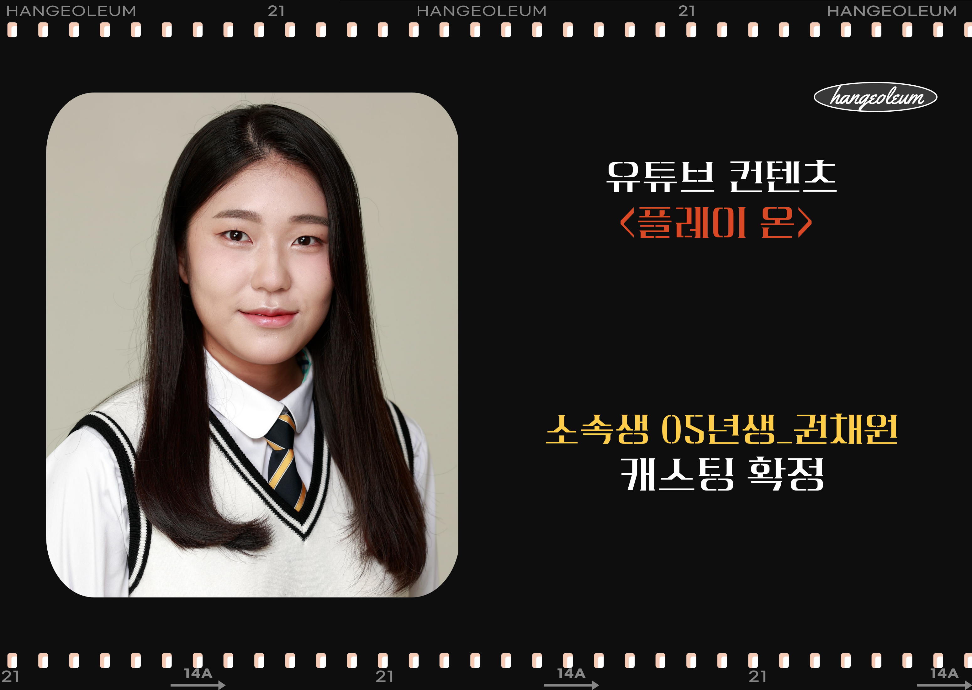 [유튜브] 유튜브 컨텐츠 < 플레이 온> 한걸음 소속생 권채원 아역 캐스팅 확정 안내.
