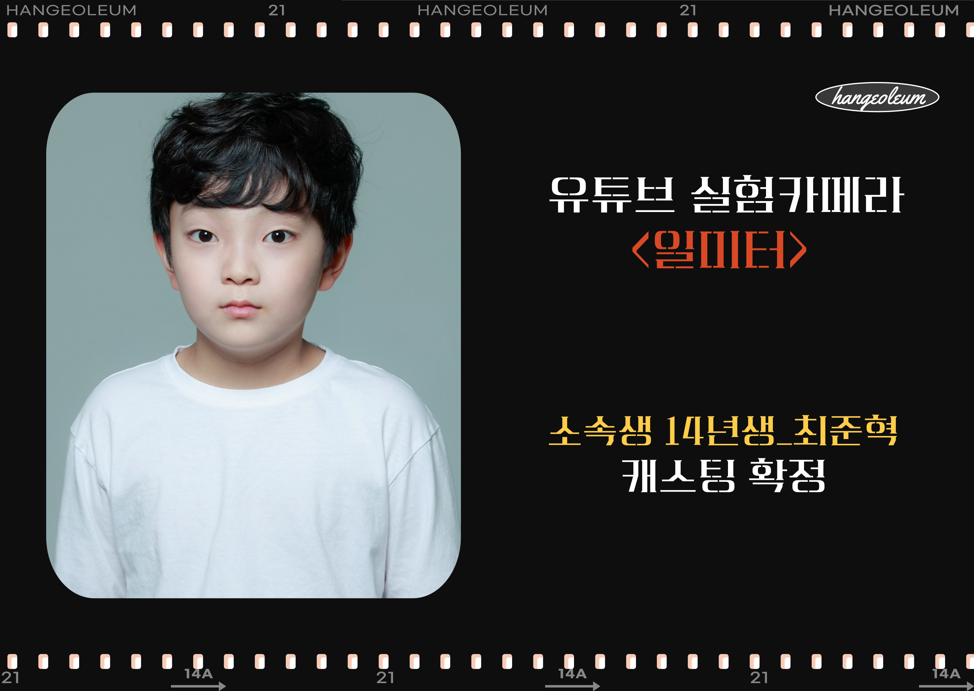 [유튜브] 유튜브 실험카메라 < 일미터 > 한걸음 소속생 최준혁 아역 캐스팅 확정안내.