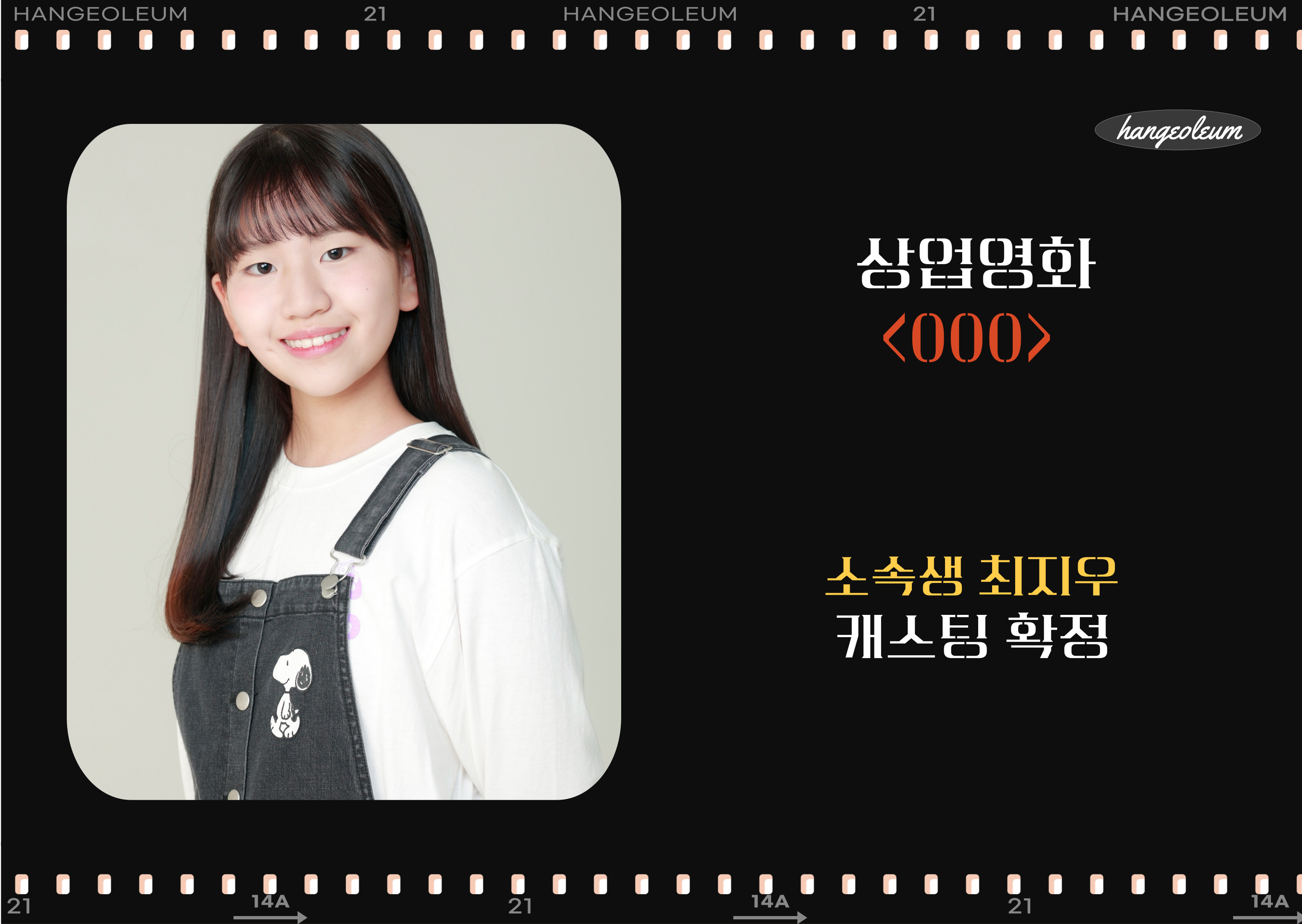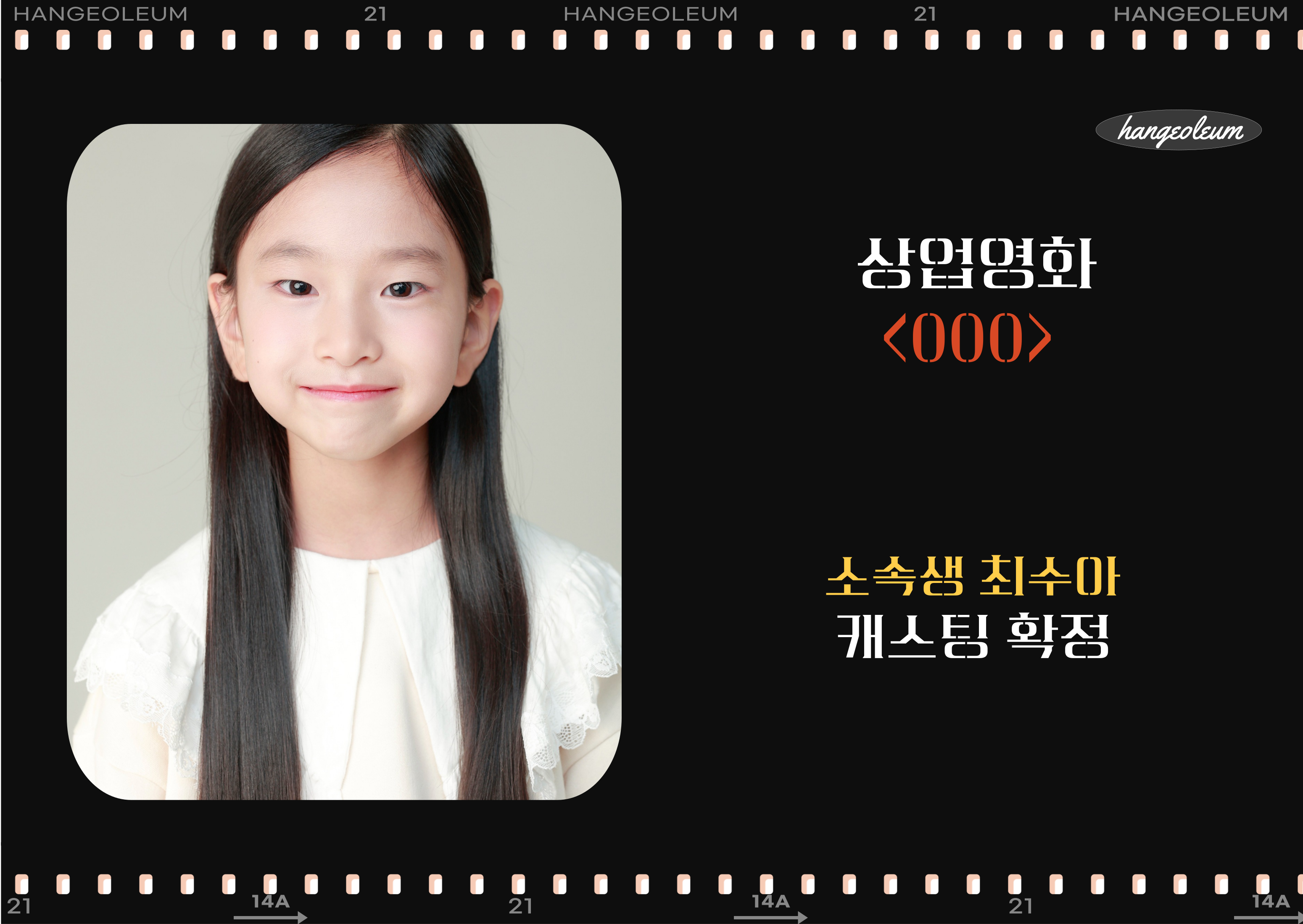 [영화] 상업영화 < 000 > 한걸음 소속생 아역 캐스팅 확정 안내.