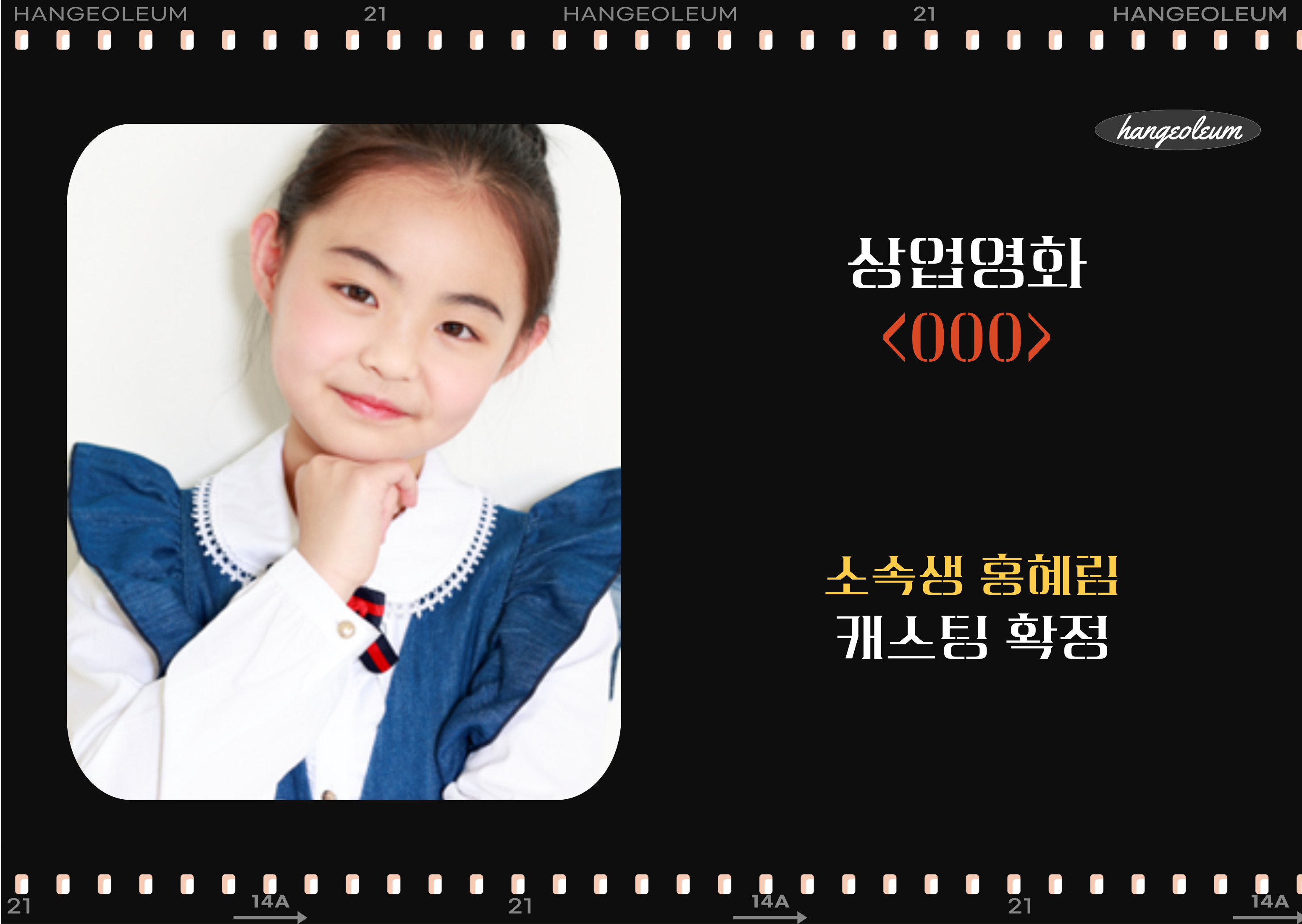 [영화] 상업영화 < 000 > 한걸음 소속생 홍혜림 아역 캐스팅 확정 안내.