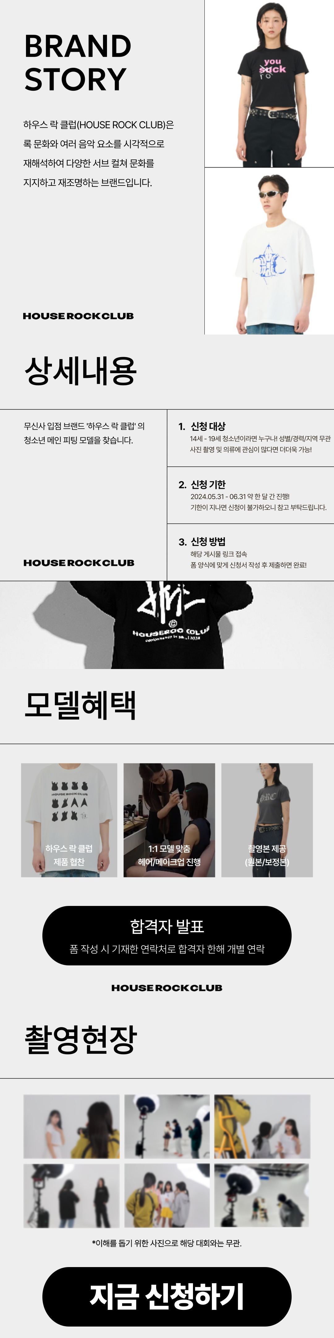 무신사 입점 브랜드 '하우스락클럽' 하이틴 의류 모델 모집 진행 종료!