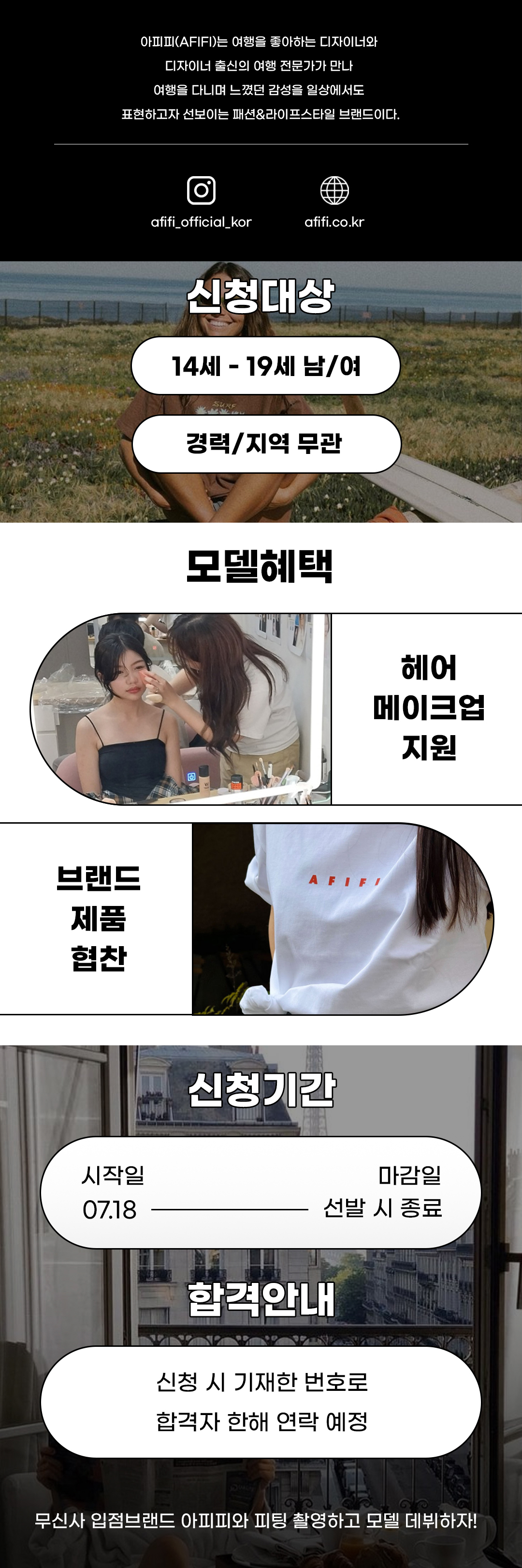 무신사 입점 의류 브랜드 '아피피' 하이틴 모델을 모집합니다!
