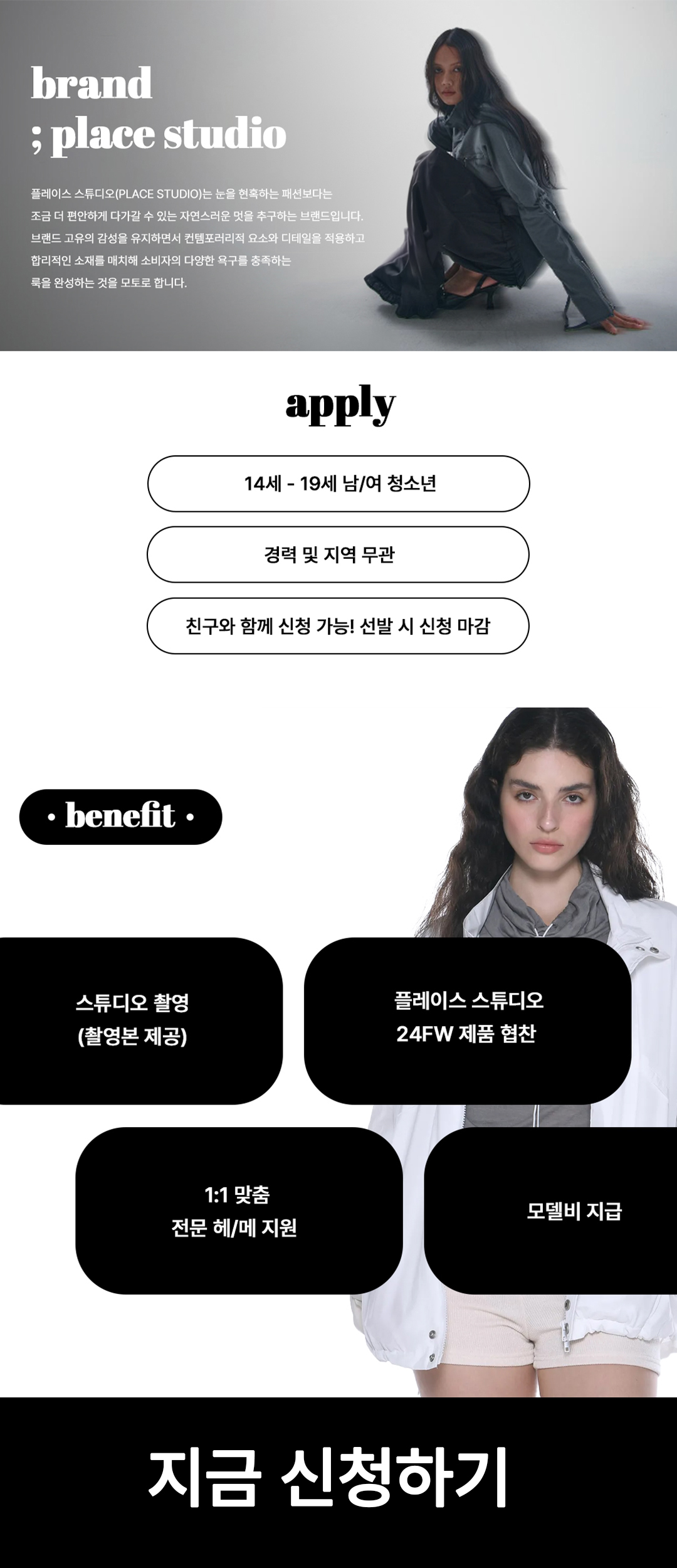 무신사 입점 의류 브랜드 '플레이스스튜디오' 하이틴 모델을 모집합니다!