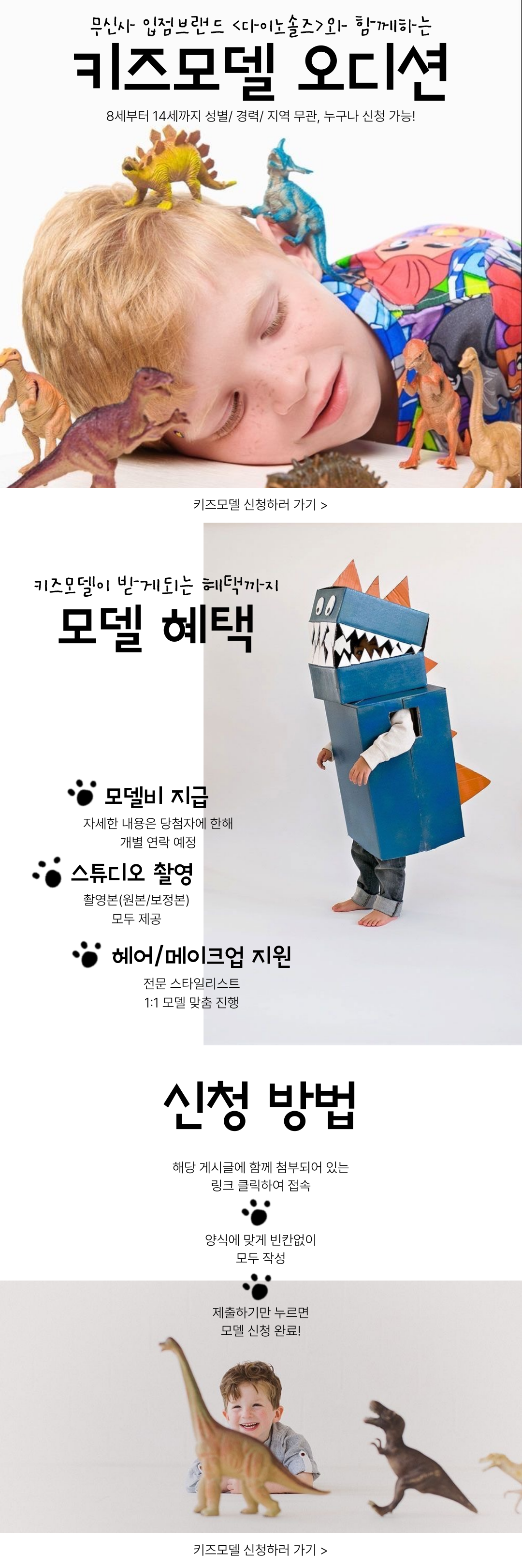 무신사 입점 의류 브랜드 '다이노솔즈' 키즈 모델을 모집합니다!