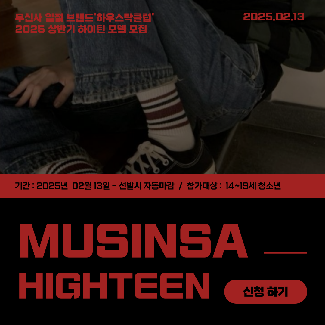 무신사 입점 브랜드 '하우스락클럽' 하이틴 의류 모델 모집 진행 종료!