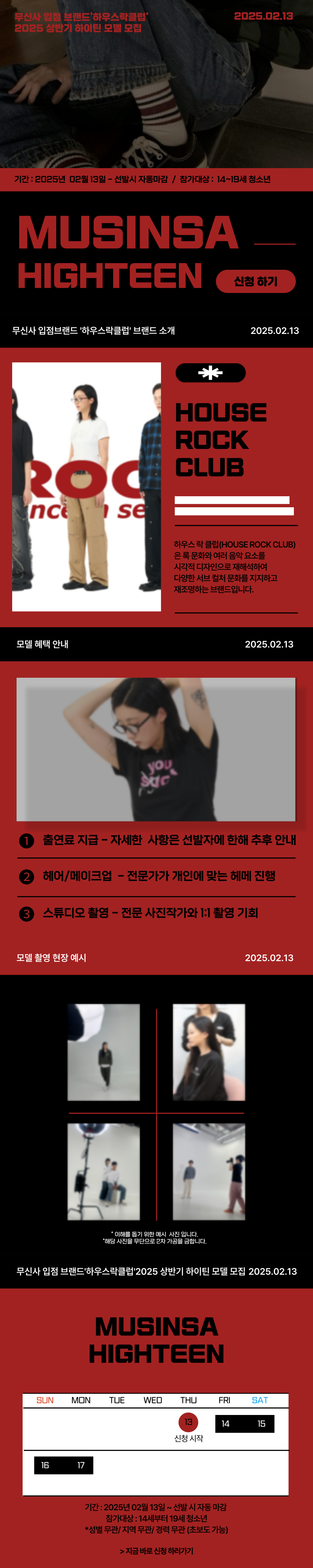 무신사 입점 의류 브랜드 '하우스락클럽' 하이틴 모델을 모집합니다!