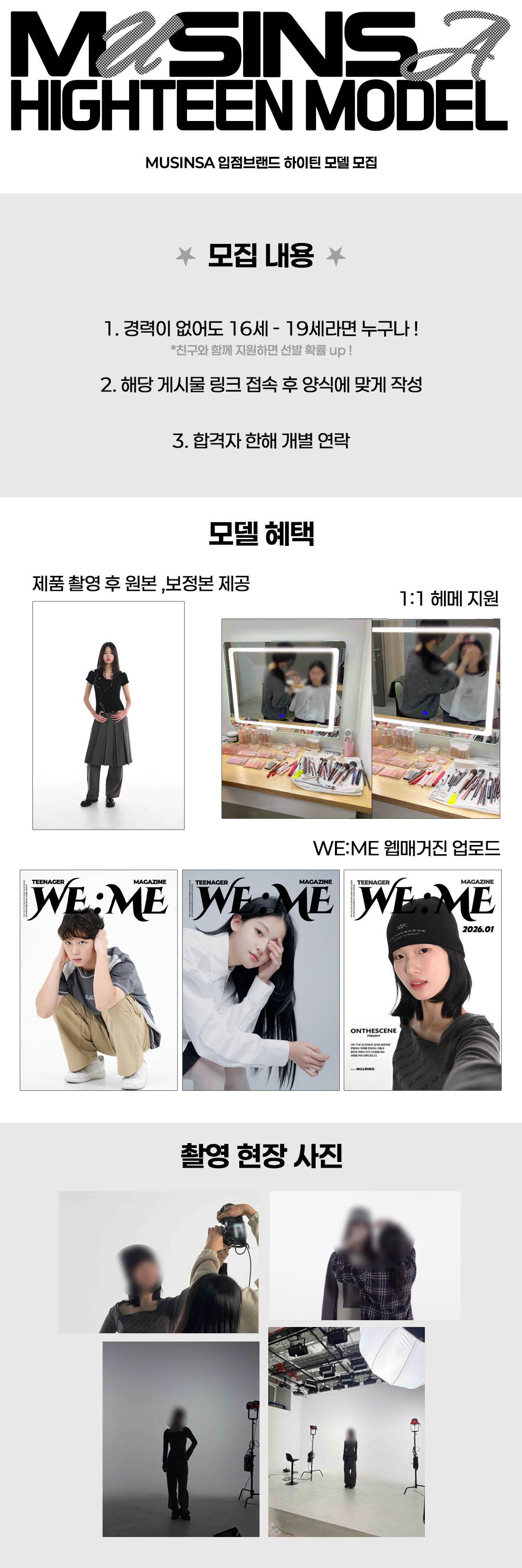 무신사 입점 의류 브랜드에서 함께 할 하이틴 신인 모델을 찾습니다!